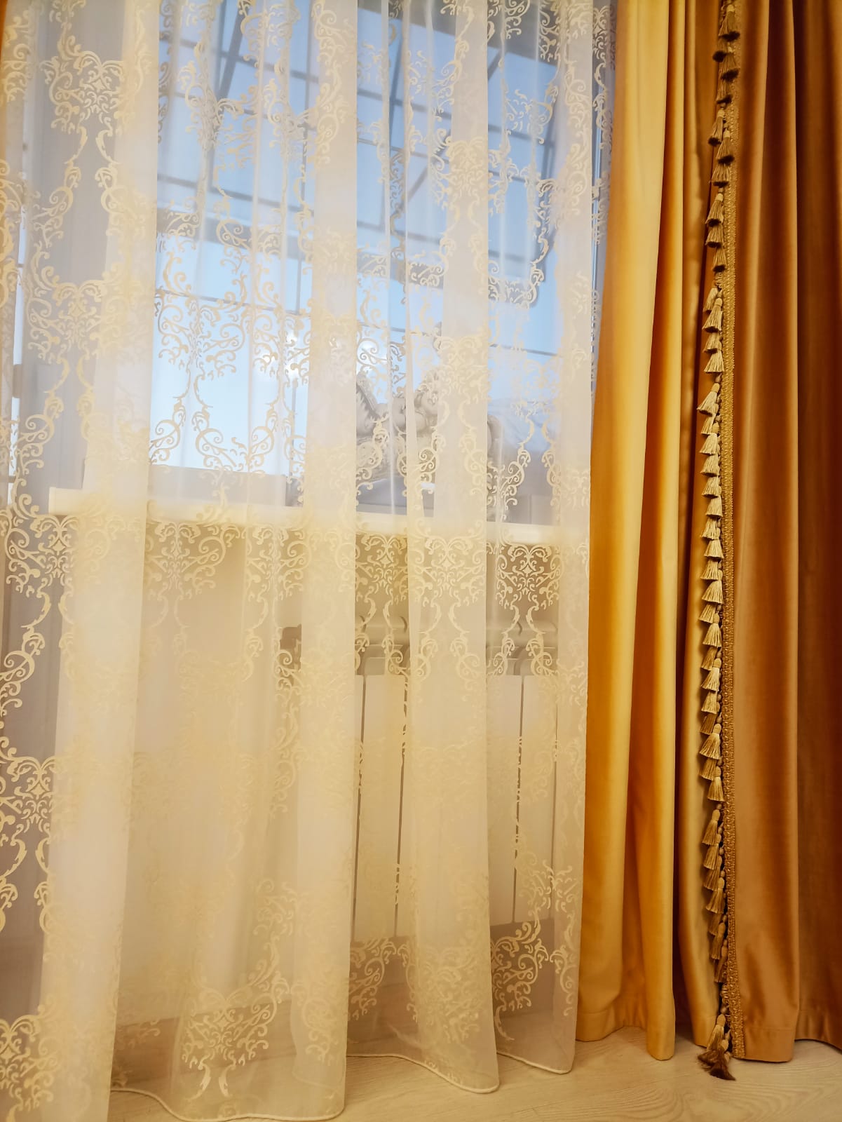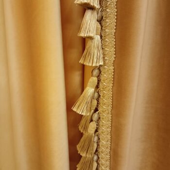 Мы выполнили для заказчицы Оксаны классические шторы из бархата с бахромой в современном дизайне. Цвет штор — золотой, он идеально подходит к мебели и дополняет интерьер, создавая атмосферу роскоши и великолепия. Шторы гармонично вписались в интерьер и выгодно подчеркнули его достоинства.